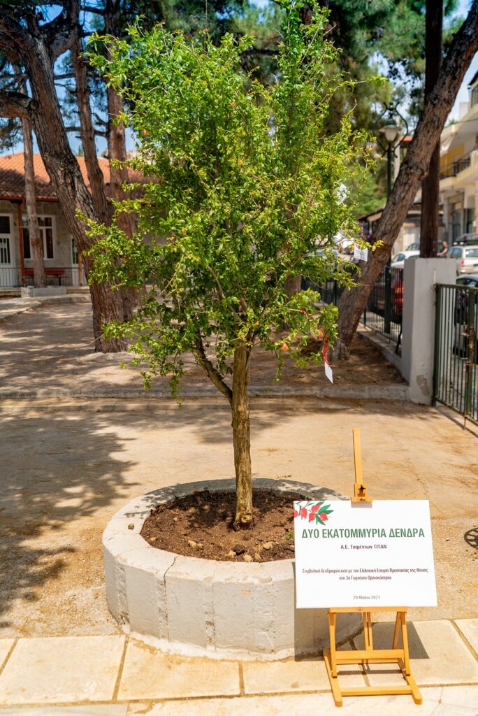 Μία δράση ιδιαίτερου συμβολισμού είναι η φύτευση της ροδιάς που πραγματοποιήθηκε το Σάββατο 29 Μαΐου στην αυλή του 3ου Γυμνασίου Ωραιοκάστρου, σηματοδοτώντας τη συνεργασία του Τιτάνα με την Ελληνική Εταιρία Προστασίας της Φύσης (ΕΕΠΦ), η οποία γιορτάζει φέτος 70 χρόνια συνεχούς δράσης πανελλήνιας εμβέλειας για την προστασία του φυσικού περιβάλλοντος.