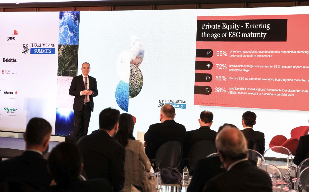 Το συμπέρασμα αυτό προκύπτει από την έρευνα που διεξήγαγε η Price Waterhouse Coopers Greece (PwC), τα ευρήματα της οποία παρουσίασε στο 1st Καθημερινή Athens ESG Summit, ο διευθύνων σύμβουλος της εταιρείας, Μάριος Ψάλτης.
